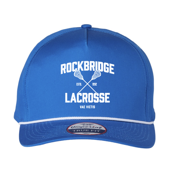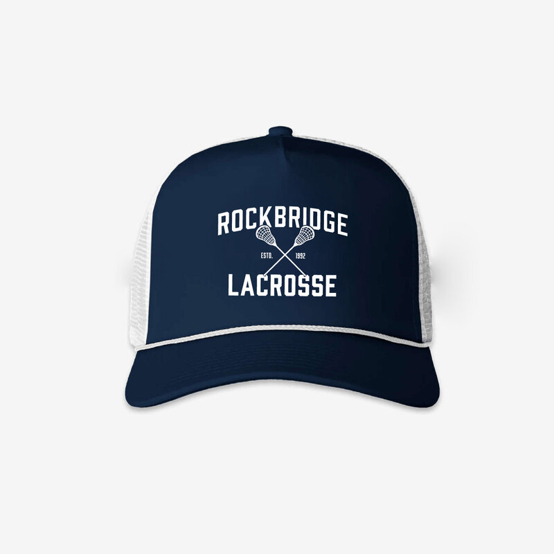 Embroidered trucker "rope hat" with "Rockbridge Lacrosse" on the front.